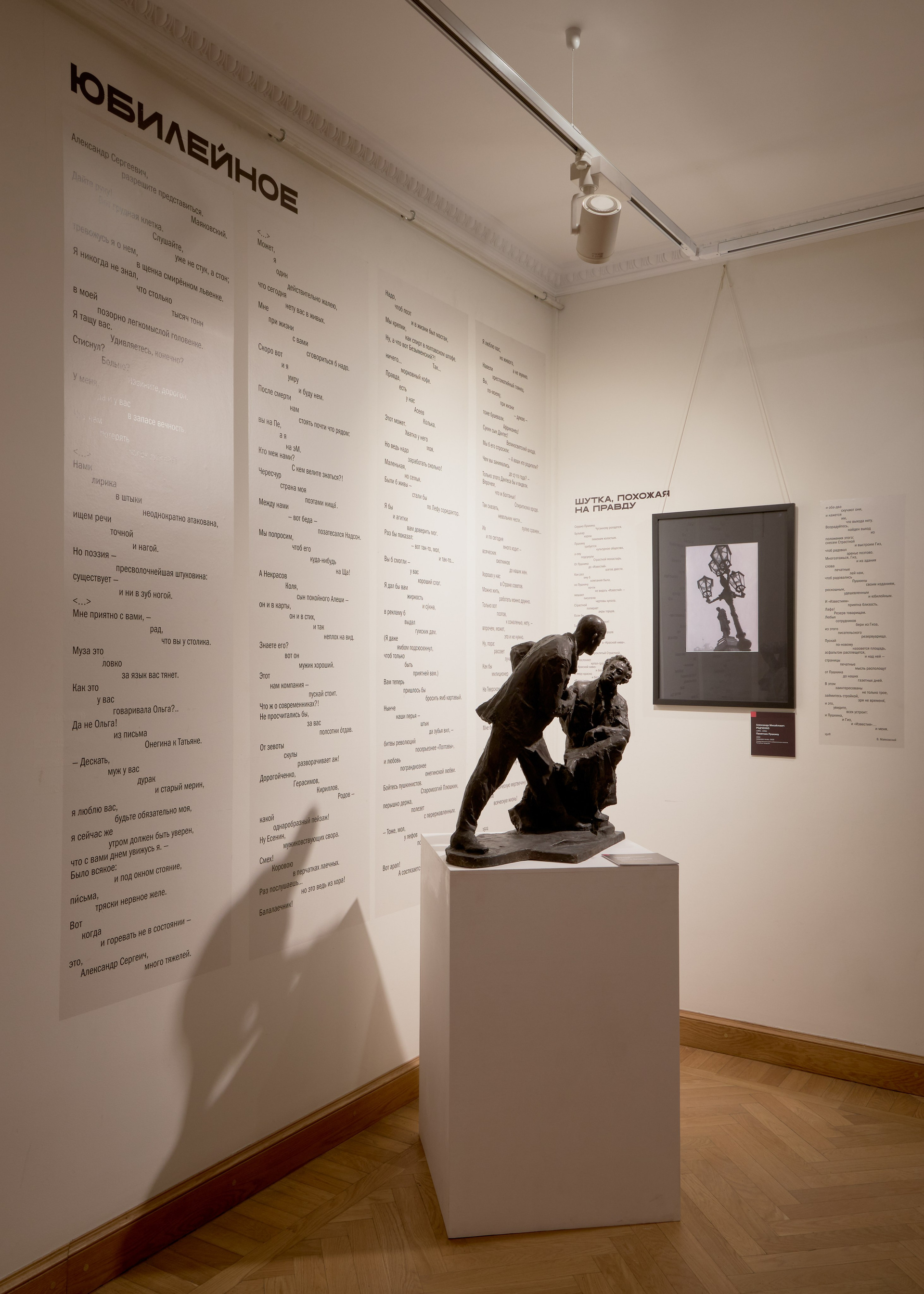 Сегодня, на исторической дистанции в сотню лет, объявление окончательной победы авангардистов над всем опытом предыдущей культуры кажется преждевременным. Как писал близкий футуристам по духу литературовед Юрий Тынянов, «любое литературное поколение либо борется с Пушкиным, либо зачисляет его в свои ряды… либо, наконец, пройдя вначале первый этап, кончает последним». Уже в 1924 году бунтарь и главный поэт нового советского государства Владимир Маяковский пишет стихотворение «Юбилейное» — лирическое посвящение, фактически признание в любви к недавно выброшенному им самим за борт классику. Написанное в преддверии юбилея, который стал предзнаменованием оглушительной феерии пушкинских торжеств 1937 года, стихотворение как бы ставило диагноз, подводило черту под пушкиноманией и канонизацией поэта, набиравшими обороты с конца XIX века.